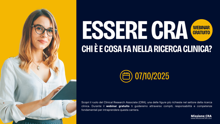 Scopri il ruolo del Clinical Research Associate (CRA), una delle figure più richieste nel settore della ricerca clinica. Durante il webinar gratuito ti guideremo attraverso compiti, responsabilità e competenze fondamentali per intraprendere questa carriera.